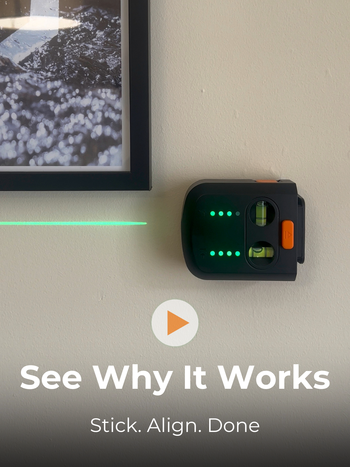 Mounts directly to walls for marking, alignment, and install work.